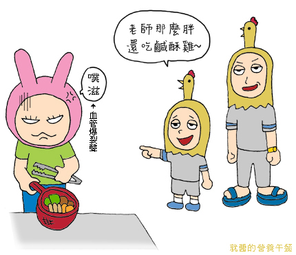 這句話讓家長和我(還有現場在買鹹酥雞的所有胖子)都超尷尬,只有說出這句話的學生渾然不知現場情況。後來家長可能是想要道歉,就幫我把鹹酥雞的錢付了。但是傷害已經造成了,那一刻起,我就決定把這個小白目列入黑名單了!!!(怒)