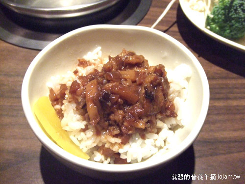 到鍋爸,我們第一個吃的,絕對不是菜啊肉的,雖然那些口味也都不錯,但是那種東西到哪間吃飽的涮涮鍋店,其實品質都不會差太多。在鍋爸,我們最推薦的,就是滷肉飯。