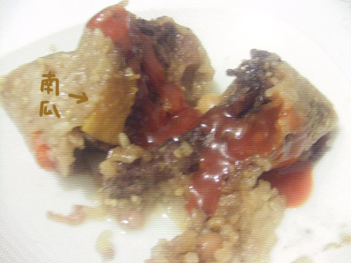 今天吃了就醬的舅媽牌南瓜粽子。就醬的舅媽聽說是很會煮各種菜,也很會發明新的菜色。