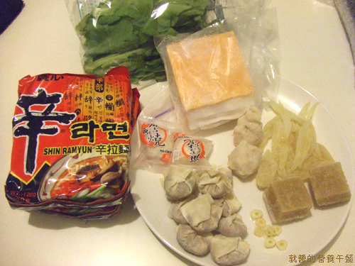 冷凍火鍋餃、丸子類 ←本次使用凍豆腐x2、花枝丸x2、起司麻薯燒x2、就醬爸包的餛飩x10