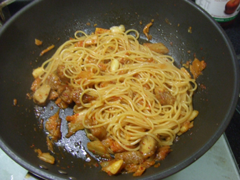 10. 放入義大利麵條一起炒