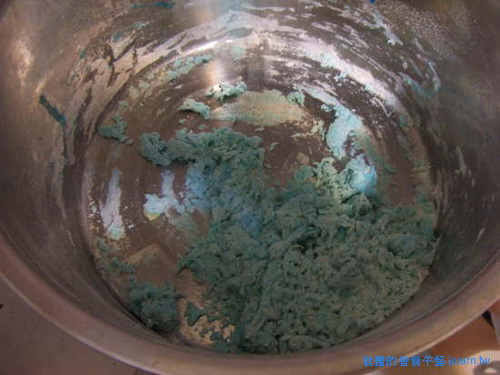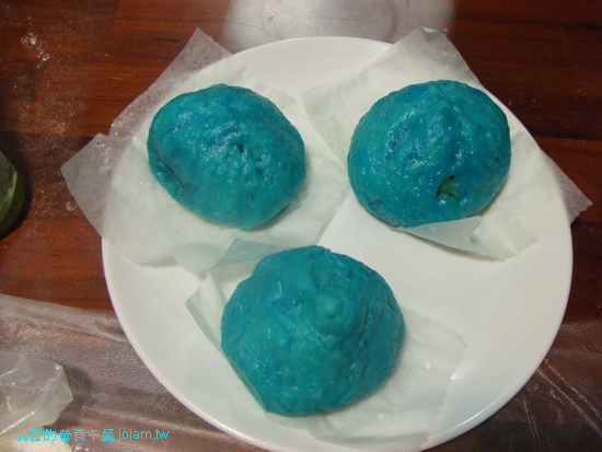 ↑ 蒸熟後的史萊姆!! 但是不知道為什麼表面都凹凸不平?! 我確定不是色素的關係導致,因為我知前也有自己做過肉包都是凹凸不平...