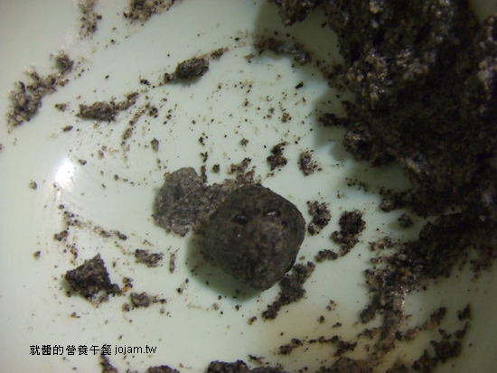 ↑然後另外捏黑芝麻麵糰來做眼珠,眼白就直接用原色麵團,嘴巴把蕃茄醬混入麵團,全部一併拿到電鍋蒸熟