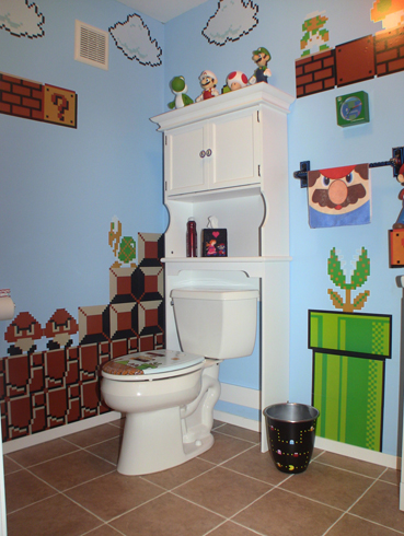 有一位瑪利歐粉絲Gregory Pinzone,把廁所改造成這樣!!!