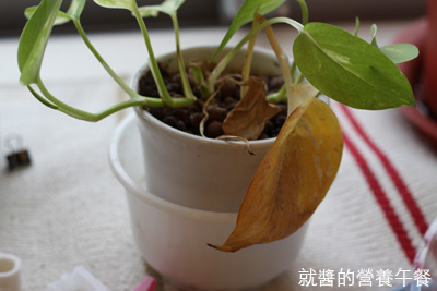 嚇到的註解: 黃金葛的汁液具有毒性,若不慎接觸到,則會引起皮膚炎;若接觸的部位是口部,則會造成嘴唇紅腫,或引起腹瀉症狀。好孩子不要學我們放黃金葛在食物上啊啊啊啊啊~~